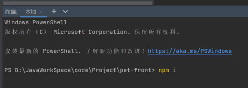 当克隆好代码到自己的编译器之后,打开终端,输入npm i下载相关依赖