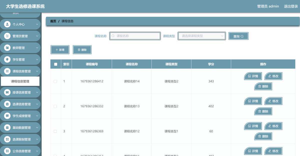 5.课程信息管理:管理员可以管理选修课程的信息,包括添加、编辑、删除等操作。
