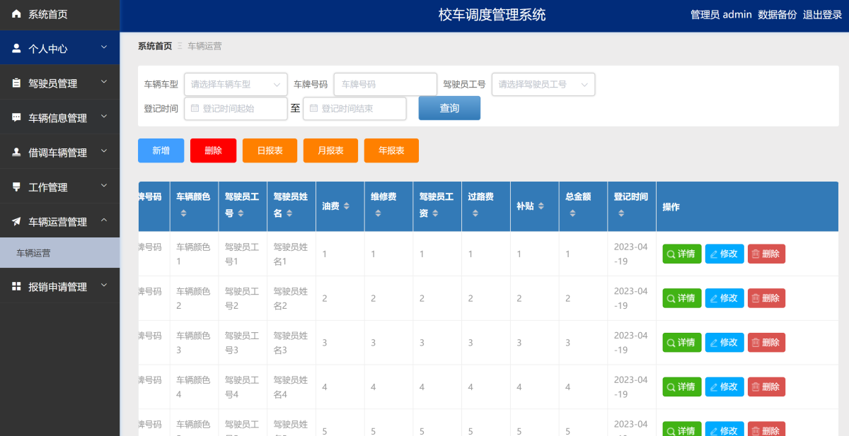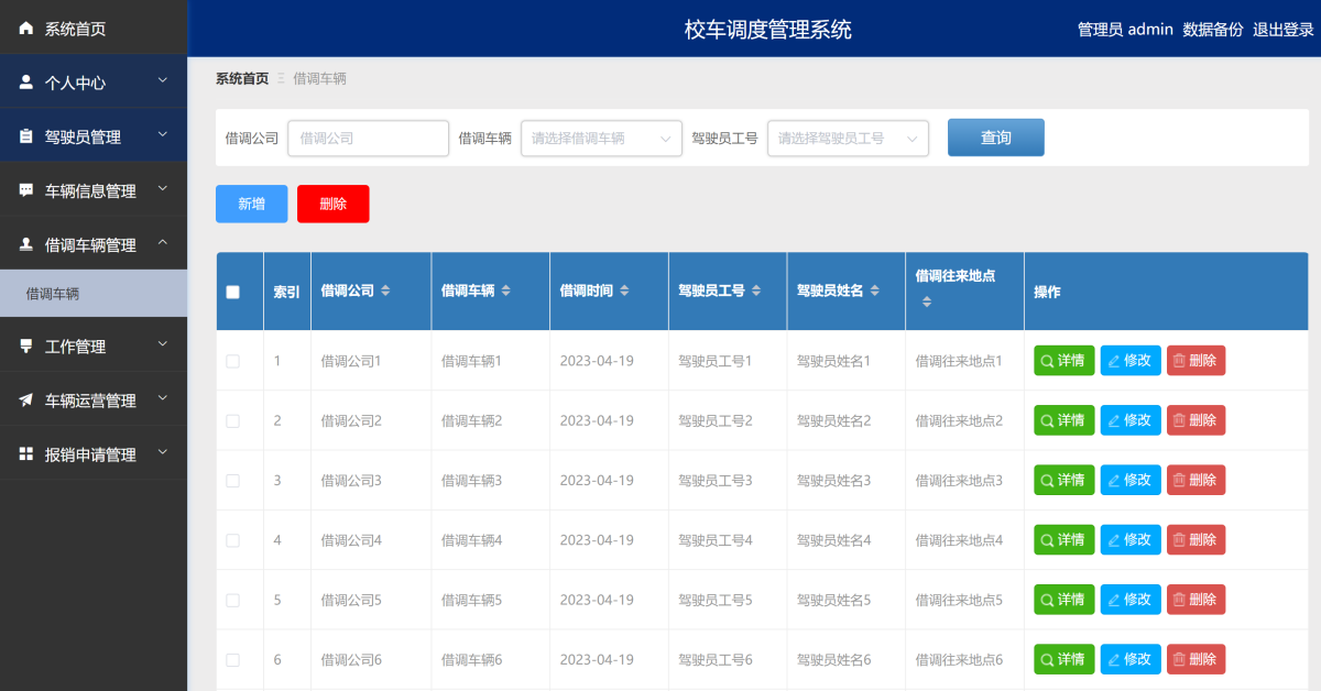 4.借调车辆管理:管理员可以管理车辆的借调情况,包括借调的时间、归还的时间等。