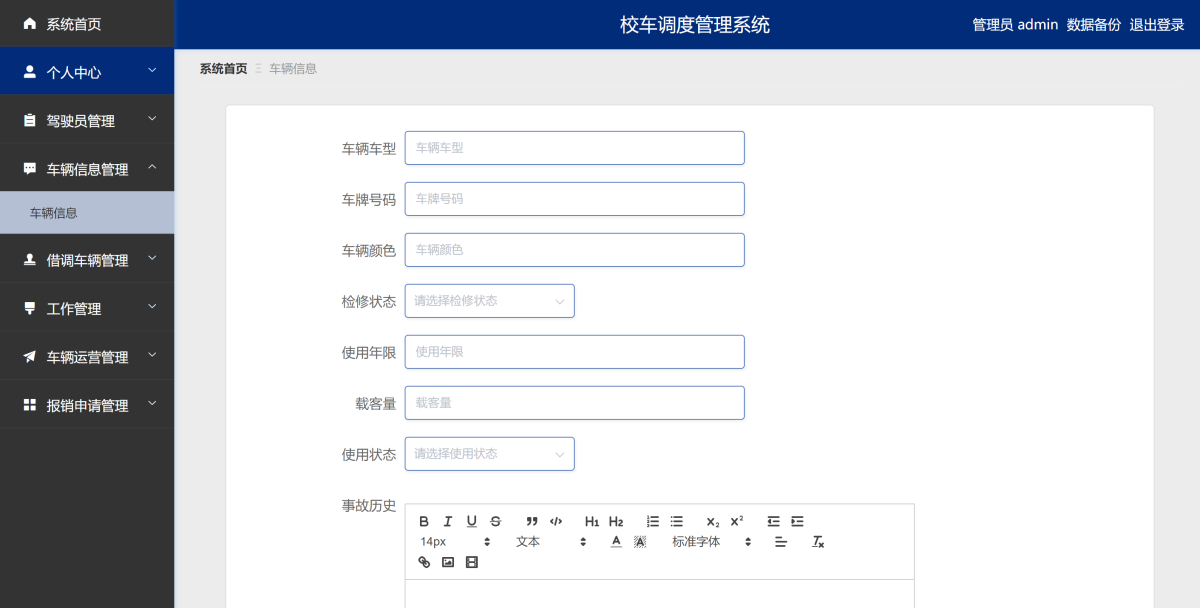 3.车辆信息管理:管理员可以管理车辆的基本信息包括车牌号、车型等。