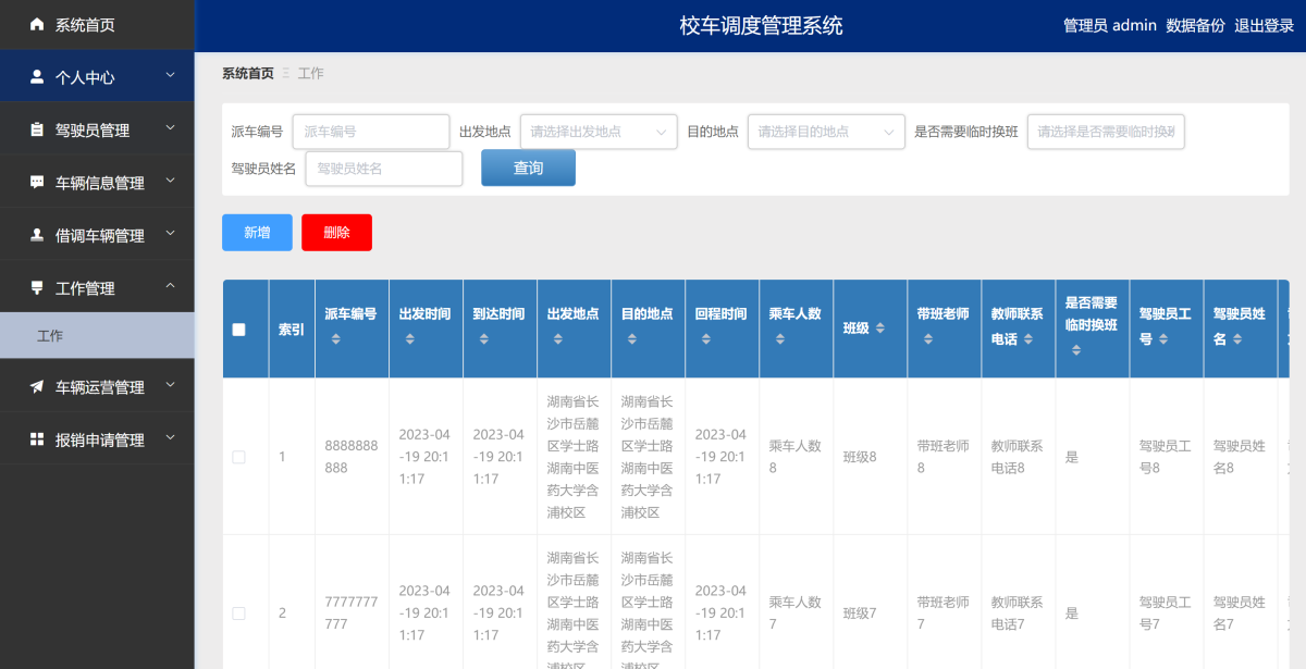 2.驾驶员管理:管理员可以对驾驶员信息进行增删改查等操作,包括驾驶员姓名、联系方式等。