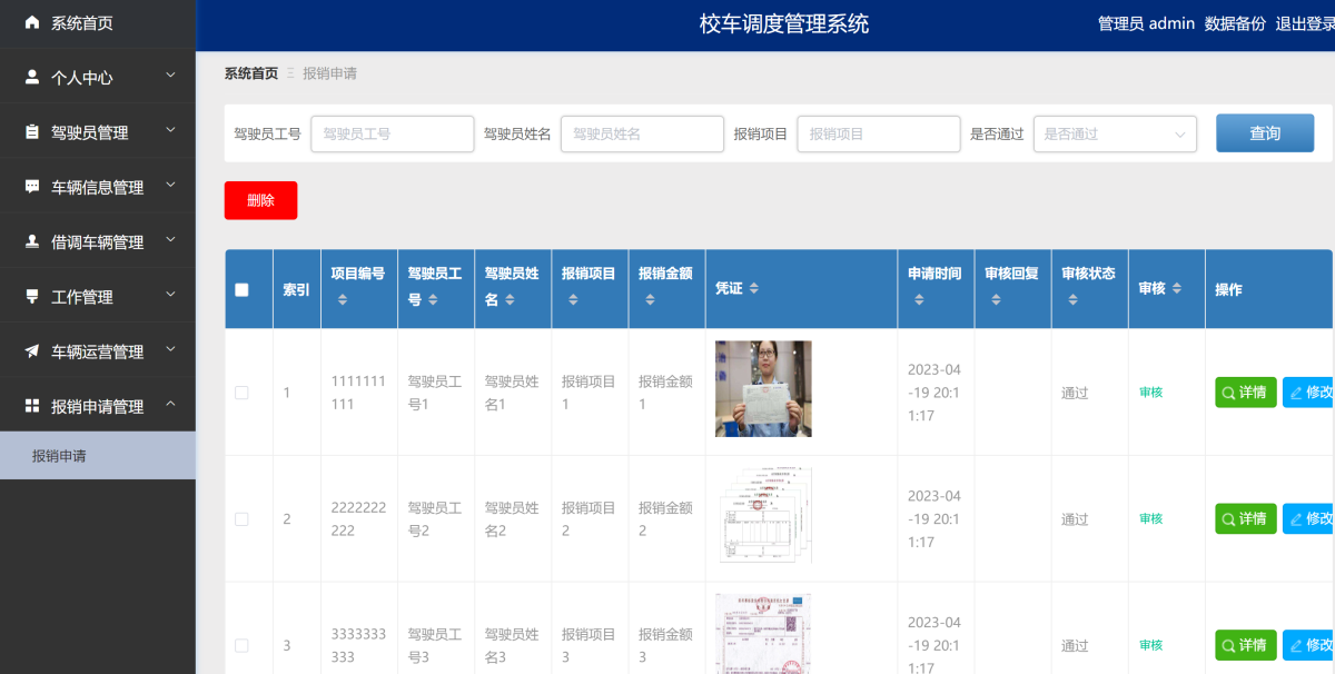 7.报销申请管理:管理员可以管理报销申请,包括报销申请的审核、审批等。