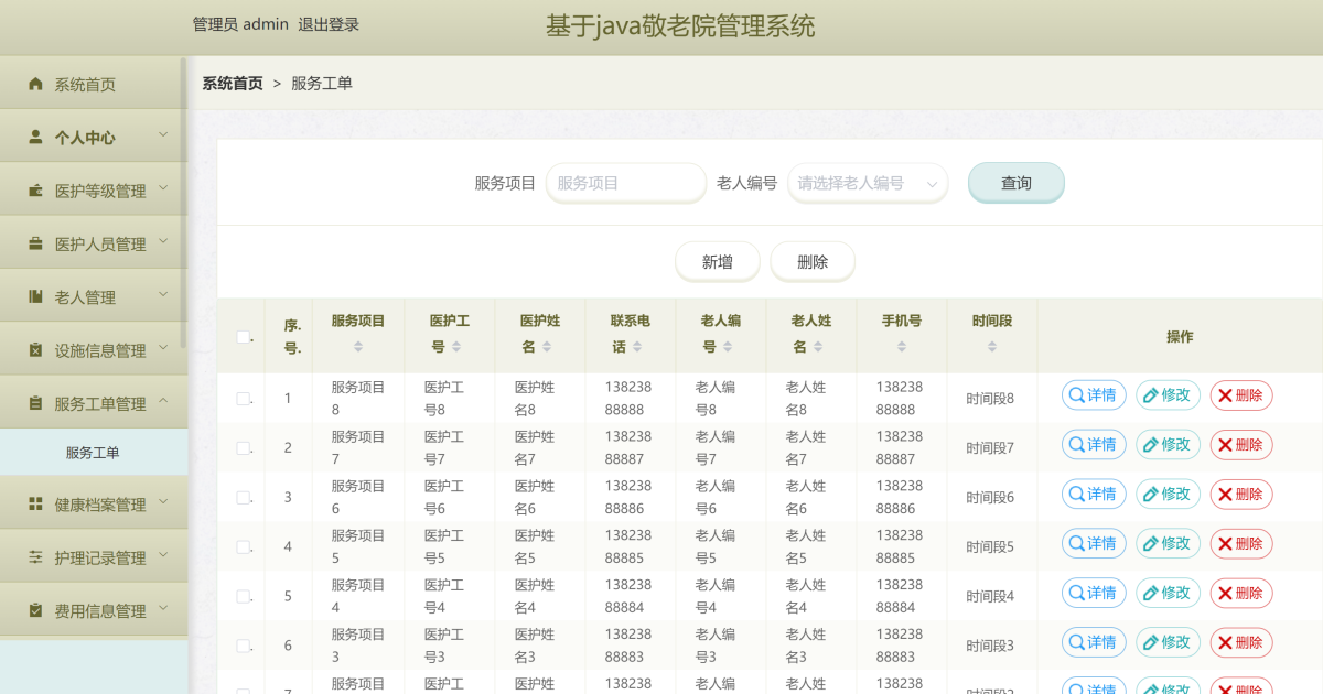 4. 服务工单管理:医护人员可以管理服务工单信息,包括添加、编辑、删除等操作。