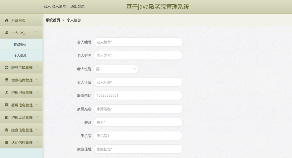 1.个人中心:老人可以管理个人信息,包括修改密码等操作。