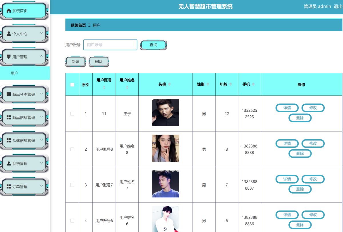 用户管理:管理员可以对用户的信息进行增删改查等操作。