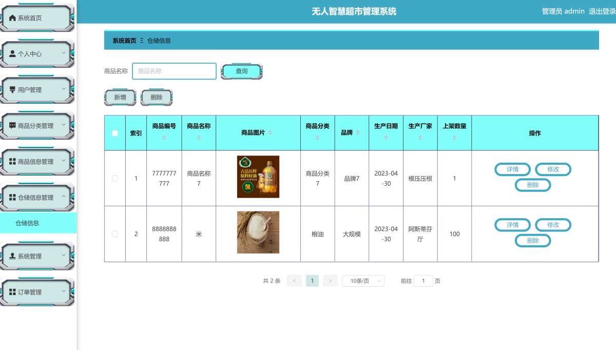 仓储信息管理:管理员可以管理仓储信息,包括货架位置、库存情况等。