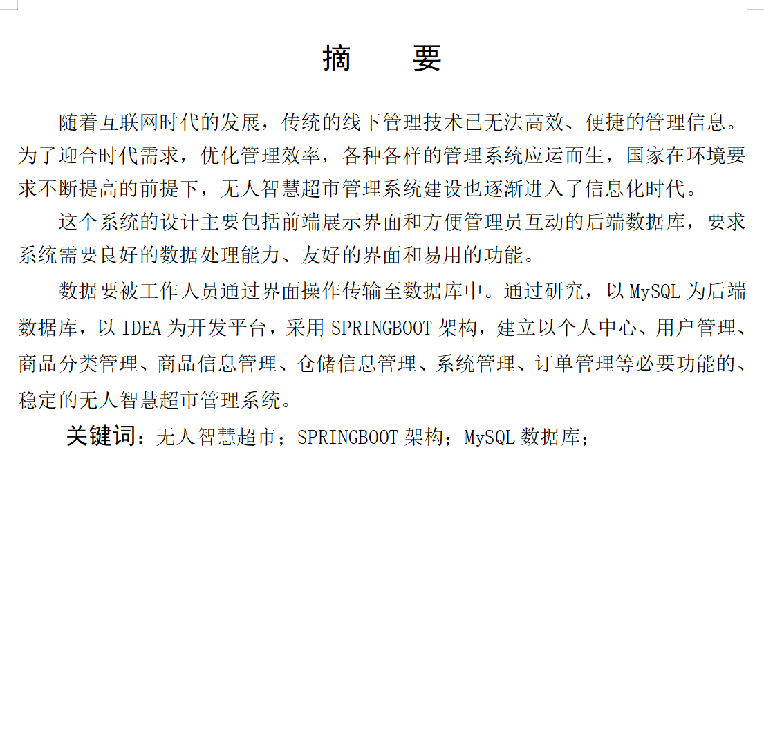 [java毕业设计项目源码,java毕设下载]基于java(springboot)无人智慧超市管理系统,是基于java编程语言,mysql数据库,springboot+vue框架,idea工具进行开发,本系统分为用户,管理员,两个角色,本系统适合作为java毕业设计和java课程设计源码下载进行参考学习。