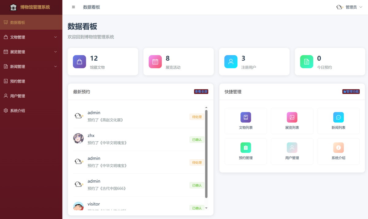 基于Java(SpringBoot + Vue)博物馆管理系统