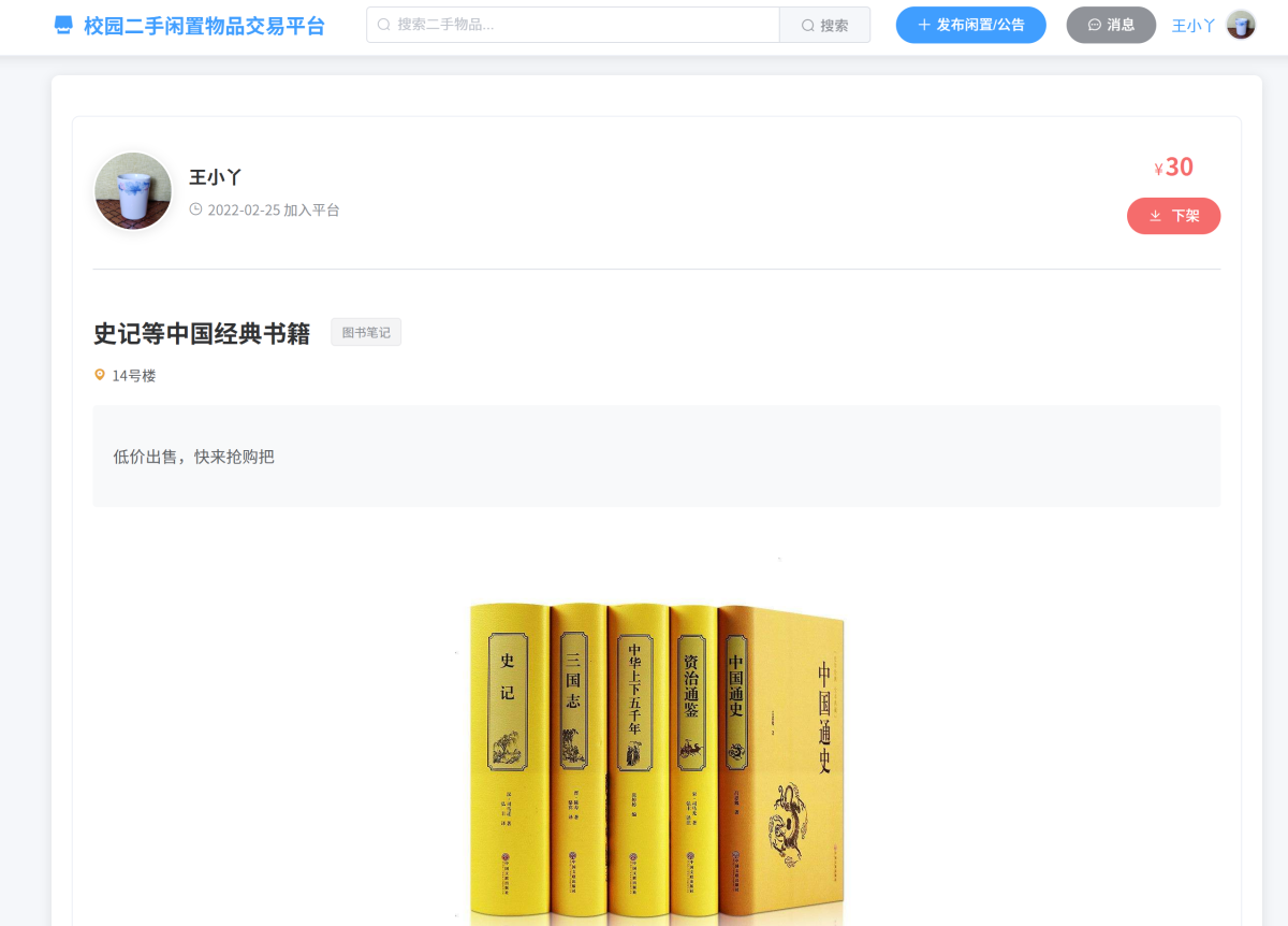 [java毕业设计项目源码,java毕设下载]基于java(springboot+vue)校园二手交易平台是基于java编程语言,mysql数据库,springboot框架和idea开发工具,前后端分离设计,本系统分为管理员、用户两个角色,本项目带论文,适合作为java毕业设计和java课程设计源码下载进行参考学习。