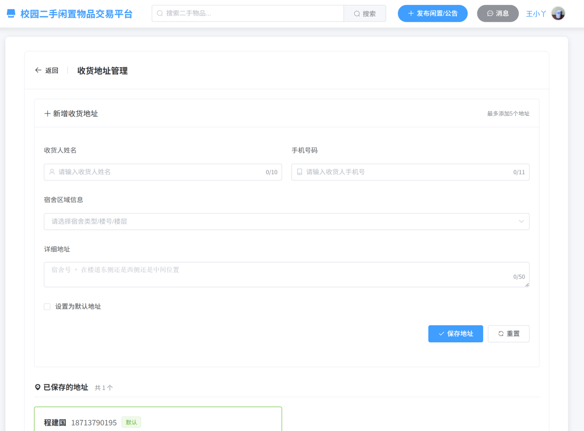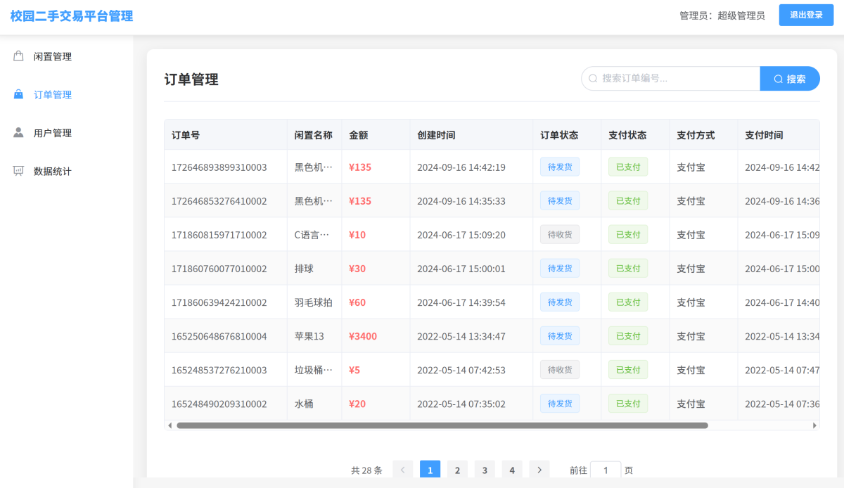 4.闲置商品管理:对闲置商品信息进行添加,修改,删除,查询,查看留言,审核上下架