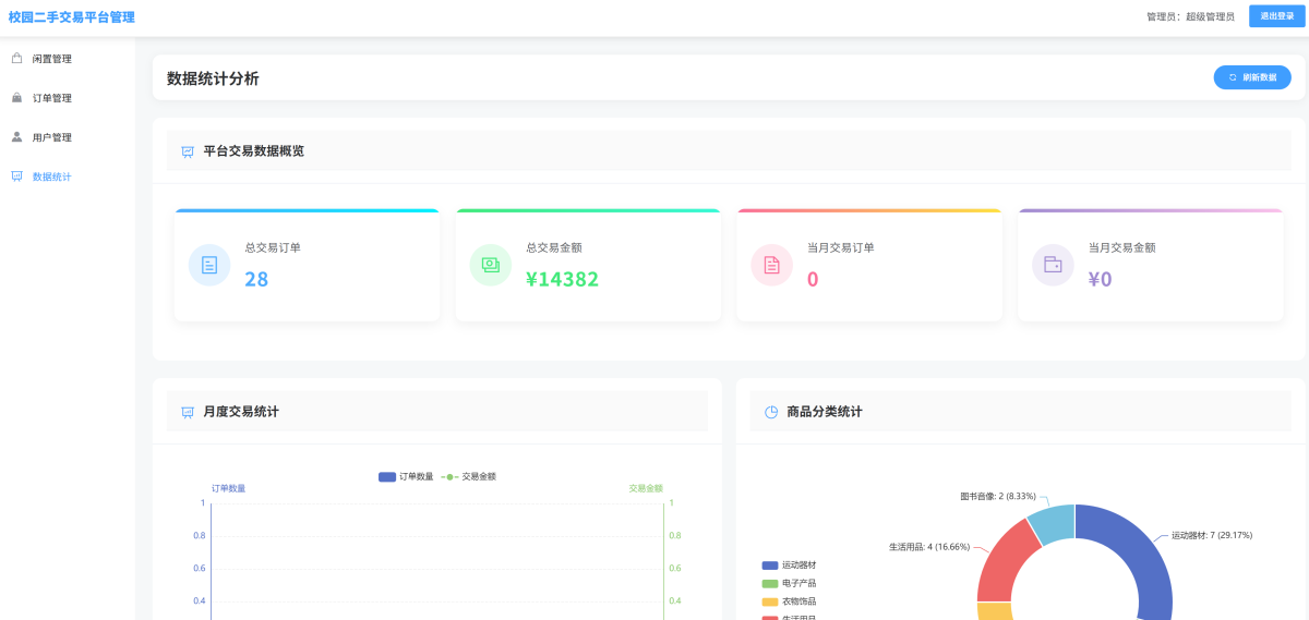 6.数据统计信息:对平台的交易数据进行统计分析,查看月度统计,分类统计