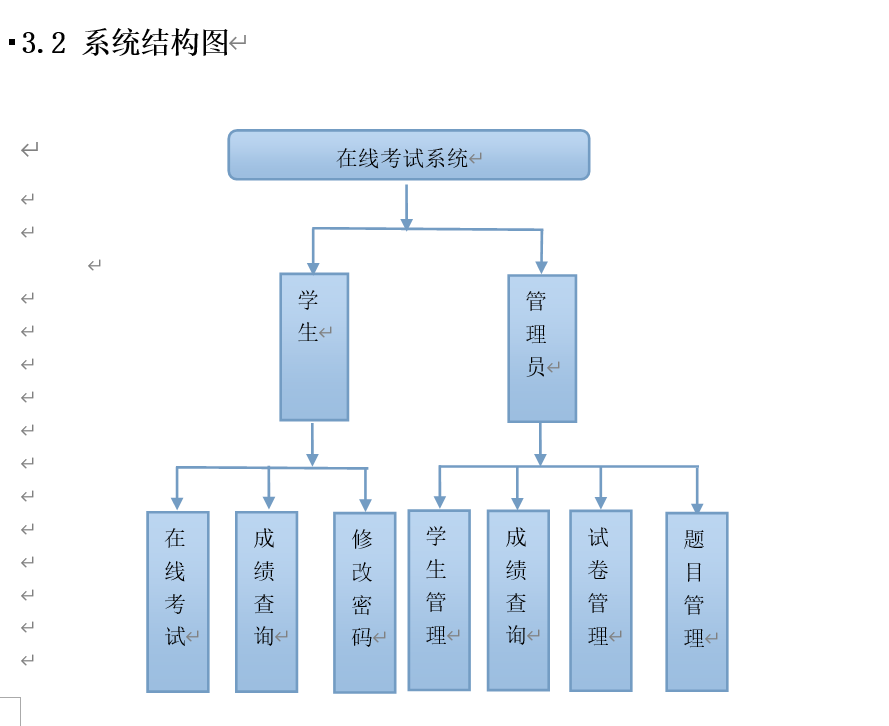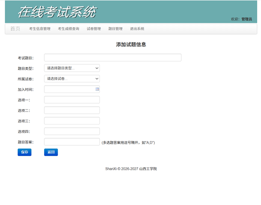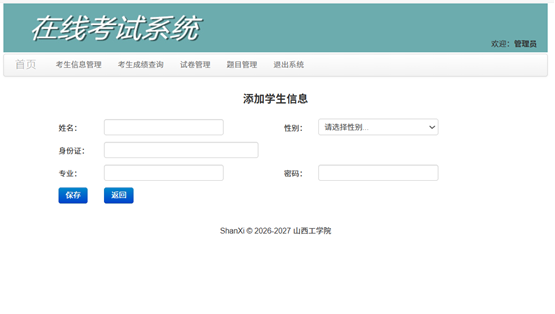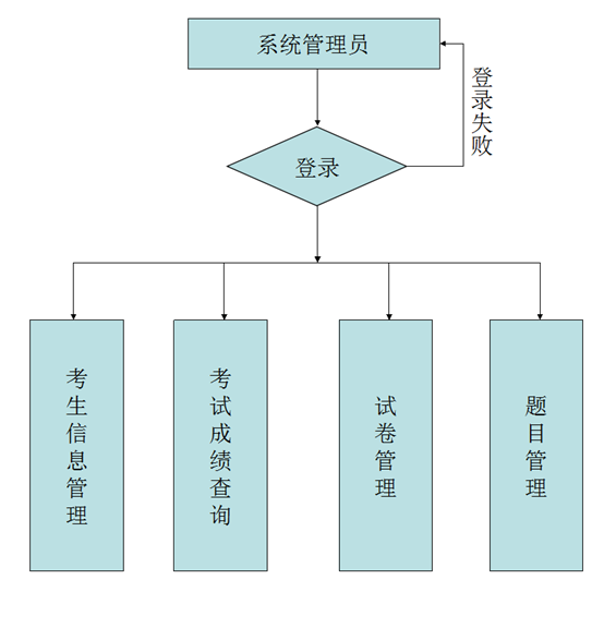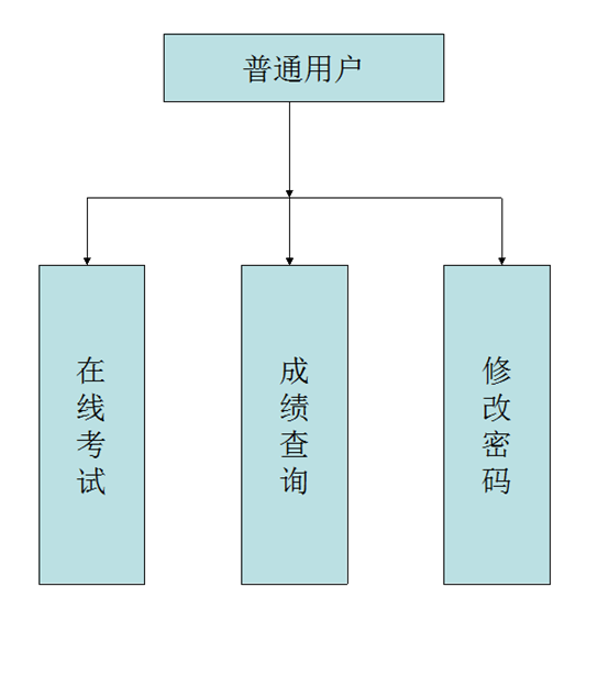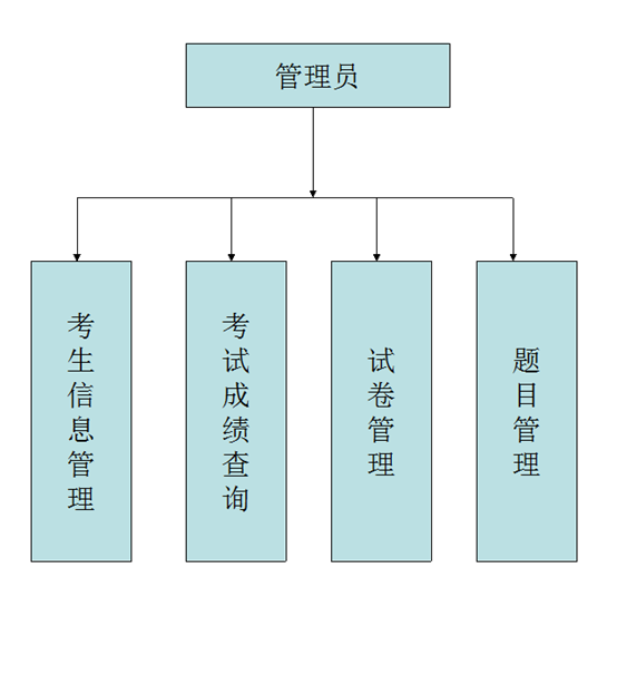 系统管理员:考生信息管理,考试成绩查询,试卷管理,题目管理;