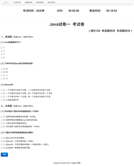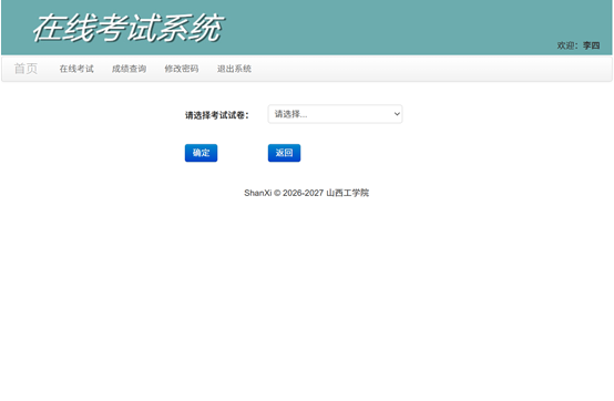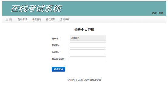 (2).前台实现学生登录,在线考试,成绩查询,修改密码等功能;