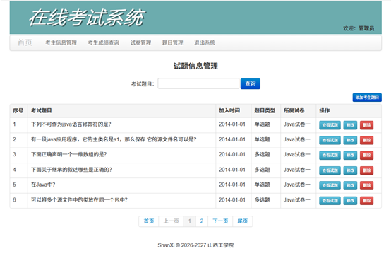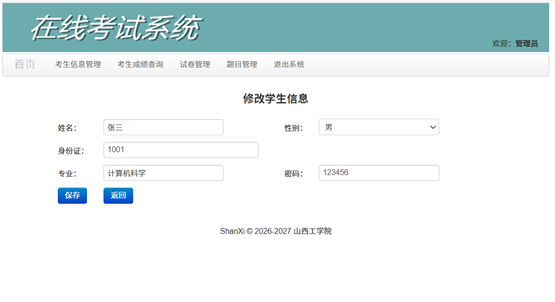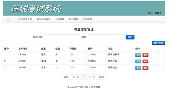 (3).后台实现管理员登录,试卷管理,试题管理,学生信息管理,修改密码等功能;