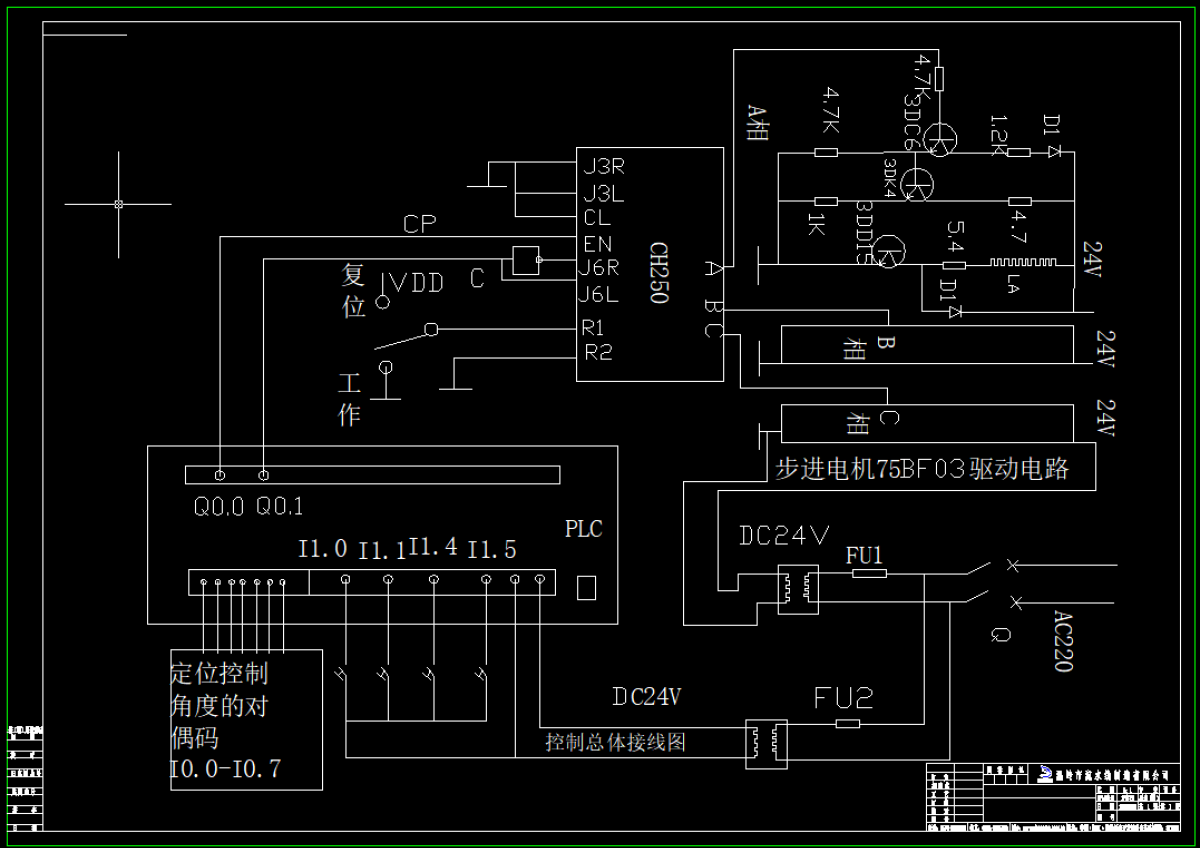 传统的步进电机控制方式由控制器产生控制指令,环形分配器根据指令将输入的单一脉冲串,按土作方式和转向分别依次向连接到步进电机各相绕组的功率放大器分配脉冲,以便形成旋转磁场。这种方式的各部分硬件的设计、选型、接口匹配往往要花费设计者一很大的精力。接口信号的匹配以及儿器件的质量等对整个系统的可靠性影响很大。现代控制系统中,PLC作为一种广泛应用于工业自动化领域的控制器,它的功能越来越强,性能越来越先进。为了配合步进电机的控制,许多PLC都内置了脉冲输出功能,并设置了相应的控制指令,可以很好地对步进电机进行直接控制。这种控制方式的优点是:大大减少系统设计的工作量,不存在各部分接口信号的匹配问题,提高系统的可靠性。整个控制系统由PLC和步进电机组成。PLC具有实时刷新技术,输出信号的频率可以达到数千赫兹或更高,使得脉冲分配能有很高的分配速度,充分利用步进电机的速度响应能力,提高整个系统的快速性。并且,PLC有采用大功率晶体管的输出端口,能够满足步进电机各相绕组数10V级脉冲电压、1A级脉冲电流的驱动要求。